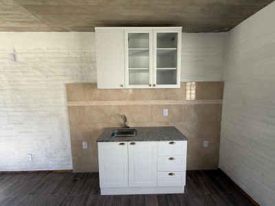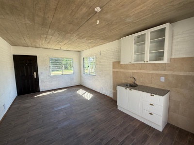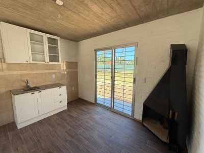 Cocina comedor semi integrado muy iluminada, con estufa a leña.
